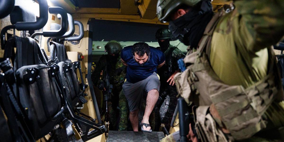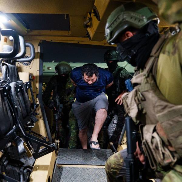 Imagen del ingreso de alias Fito a una tanqueta militar después de ser trasladado a Guayaquil, el 26 de junio del 2025.( )