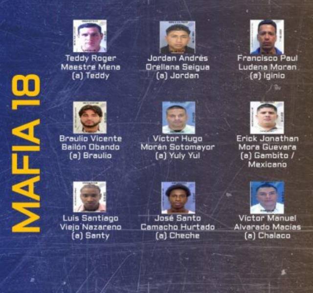 Mafia 18 es una organización delictiva dedicada al tráfico de drogas en Ecuador. Su bastión es el sur de Guayaquil, donde se ubican los puertos. Allí pelean por el territorio con Los Lagartos para el narcotráfico.