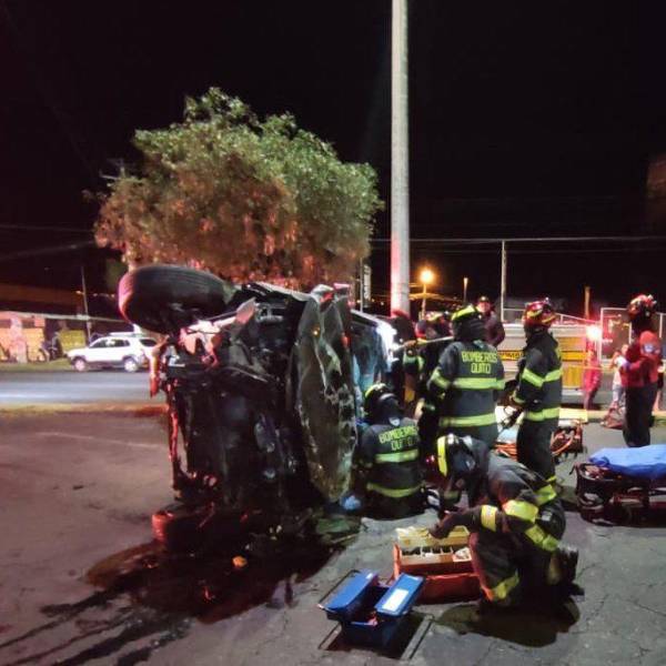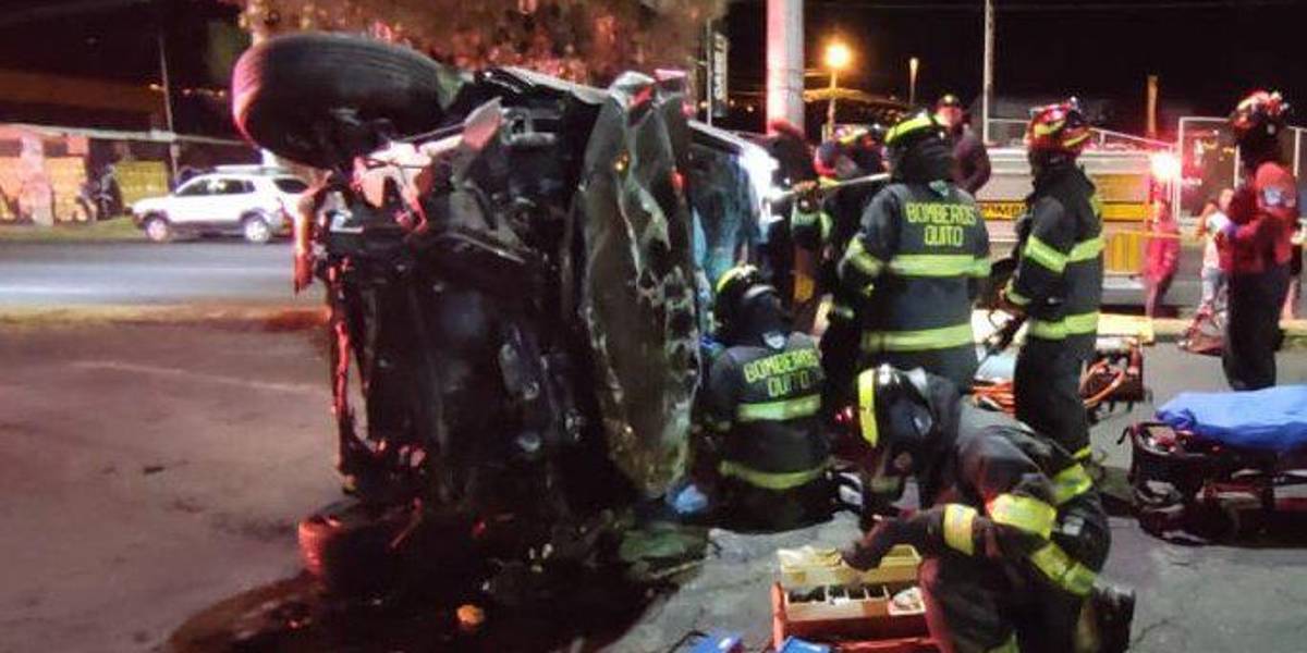 El Cuerpo de Bomberos (CBQ) rescató a cuatro personas que resultaron afectadas tras un siniestro de tránsito en la avenida Galo Plaza Lasso, norte de Quito. Ocurrió la madrugada de este sábado 16 de septiembre de 2023.