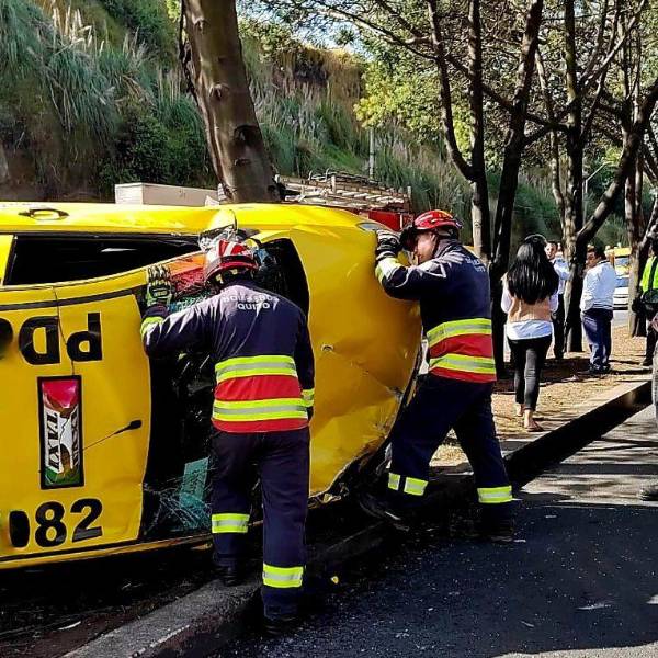 Cerca de las 08:00, un taxi se volcó en la av. Simón Bolívar, a la altura de La Argelia. "Nuestros paramédicos brindaron atención a una persona que resultó afectada", informó el Cuerpo de Bomberos (CBQ).