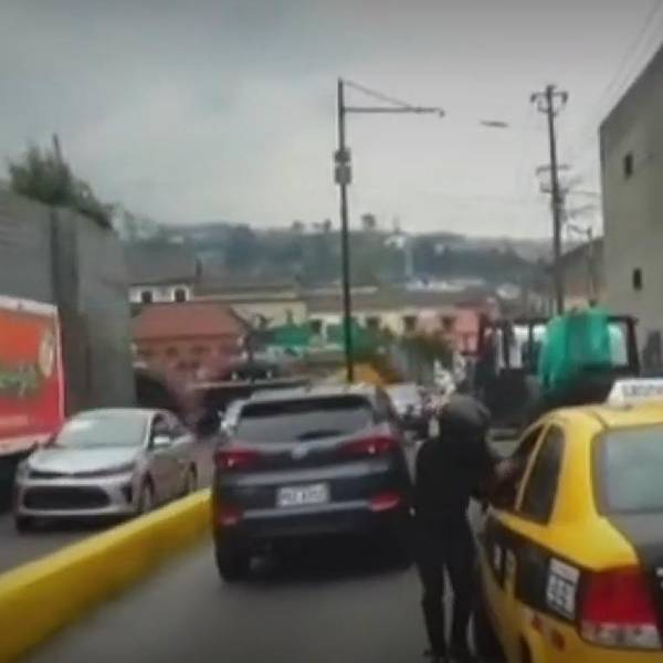 El video ya se ha viralizado. Se observa a un taxista en medio del tránsito del Centro Histórico de Quito, en el sector de 'Los Túneles', cuando se acerca una persona, a pie puesto un casco de motocicleta.