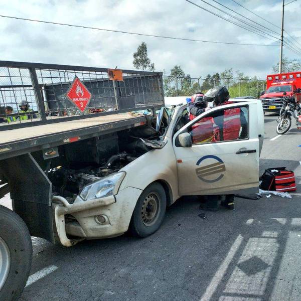 El Cuerpo de Bomberos (CBQ) informó que se chocaron una camioneta y un camión