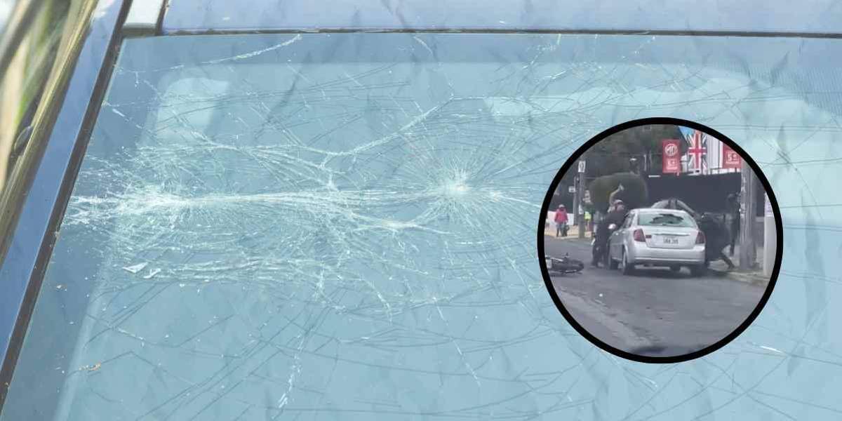 Un hombre golpeó con piedras a dos ocupantes de un automóvil. Rompió el parabrisas posterior con una roca.