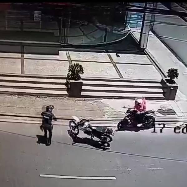 El video registra el momento en que el policía le ordena al sospechoso que se detenga tras un supuesto intento de asalto. Sin embargo, cuando este intentaba bajar de la motocicleta, saca un arma de fuego y dispara al menos siete veces contra el agente.