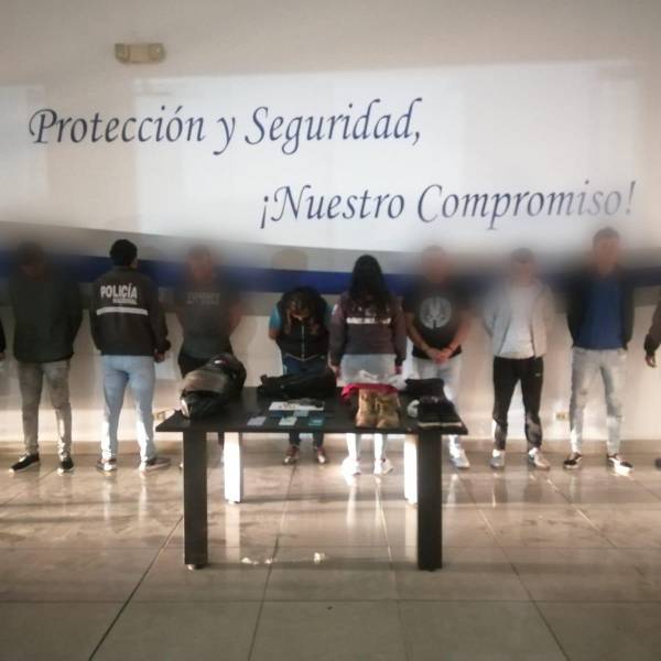 Tras este hecho, los uniformados localizaron a los autores del hecho delictivo al norte de la capital, mientras se encontraban en las inmediaciones de una entidad bancaria ubicada en el sector El Inca, en donde aprehendieron a cuatro sospechosos.
