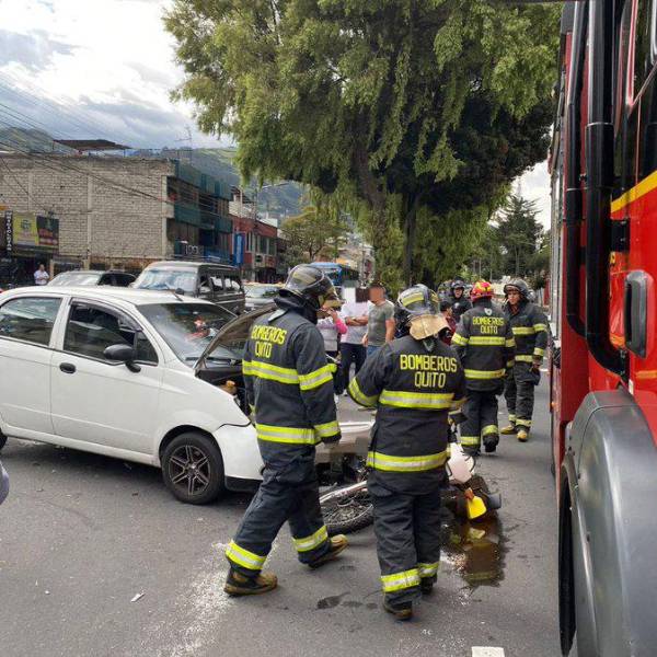 El Cuerpo de Bomberos (CBQ) informó que un vehículo y una moto colisionaron. "Nuestros paramédicos brindaron atención prehospitalaria a dos personas que resultaron heridas".