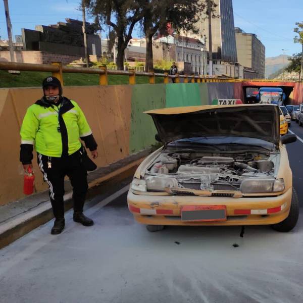 Otra emergencia se reportó antes de las 07:00 de hoy. Un taxi se incendió en sobre la avenida 10 de Agosto, a la salida del paso deprimido. Personal de la AMT hizo cierre vial del carril derecho en sentido sur - norte por seguridad.