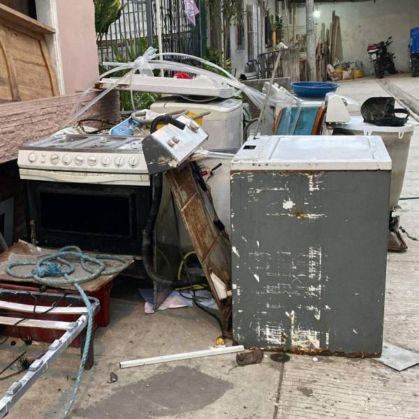 La mañana de este miércoles algunos electrodomésticos estaban afuera de la vivienda. De acuerdo a residentes, estos artículos quedaron abandonados por los ladrones. Los vecinos los han agrupado en la acera mientras esperan que los dueños de la casa acudan al lugar.