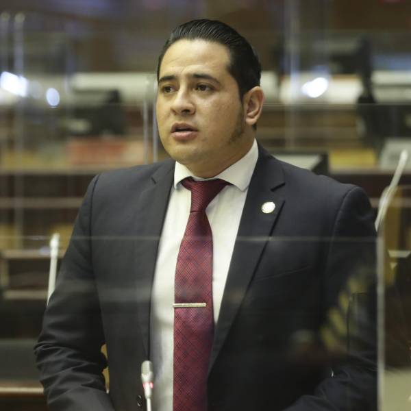 Ronny Aleaga en una curul de la Asamblea, en octubre de 2021. ( )