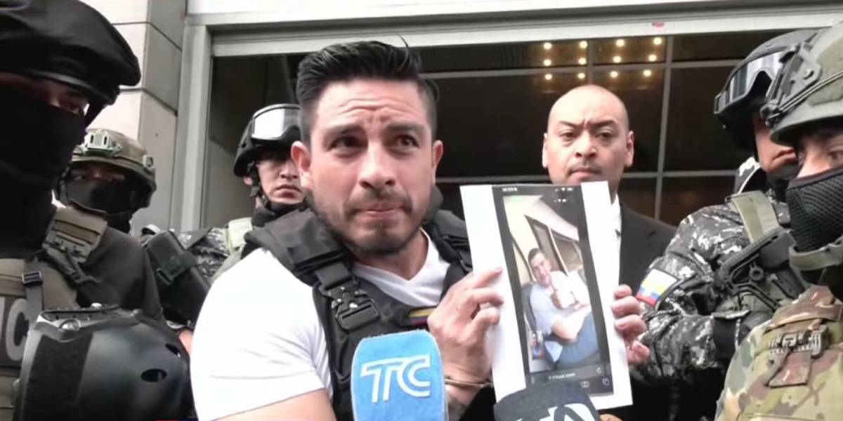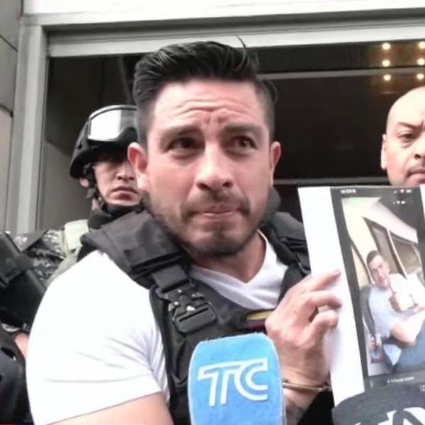 Instantes después, mostró una foto de una presunta videollamada que habría tenido con Aquiles Álvarez, actual alcalde de Guayaquil. "Sé mucho por cosas como estas", dijo al sostener una captura de pantalla impresa en la que aparece él y Álvarez. "La gente tiene miedo a que revele ciertas cosas que hablan con un PPL de la cárcel 4", afirmó.