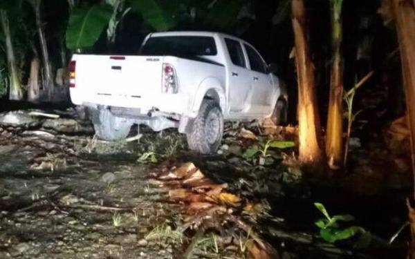 La camioneta en la que se movilizaba el hermano del prefecto fue encontrada en una plantación de banano.( )