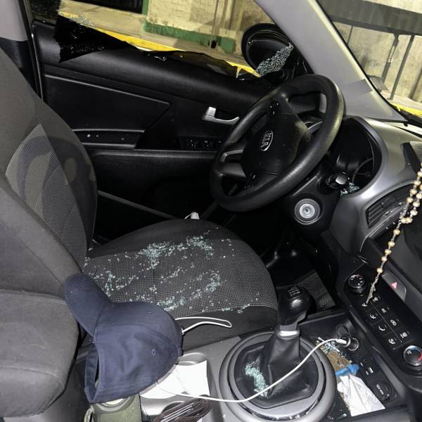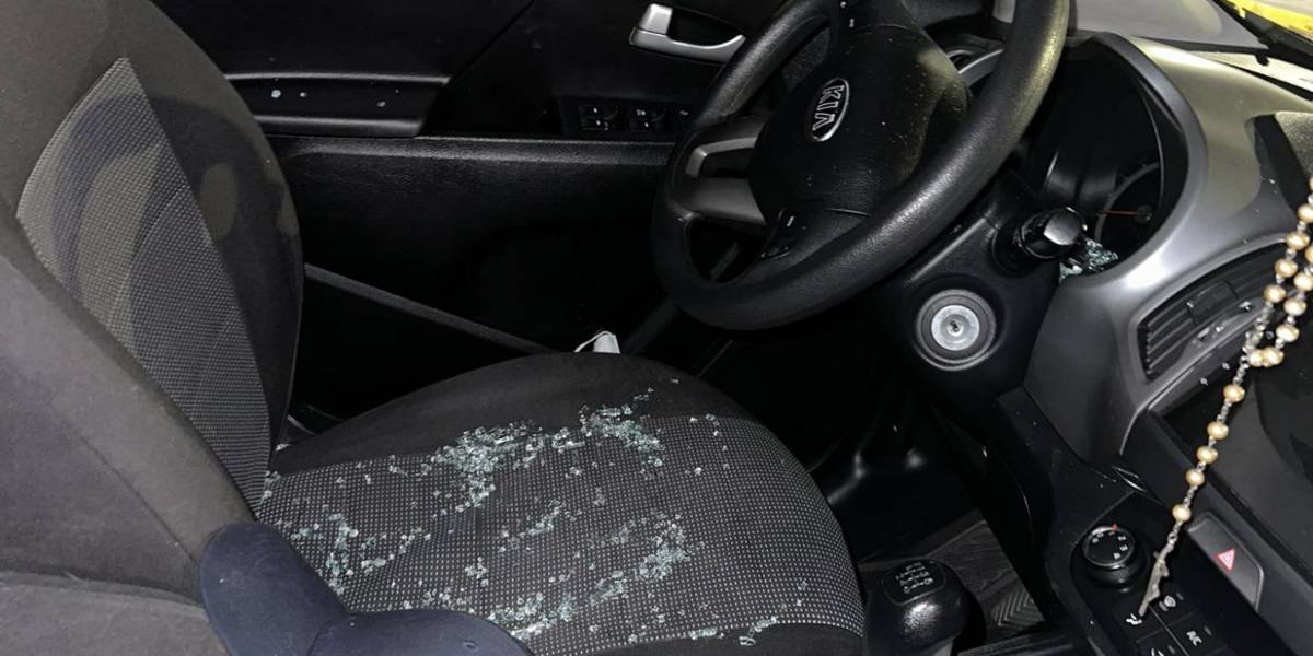 Fotografía del carro de Jorge Yunda Machado con las ventanas rotas. ( )