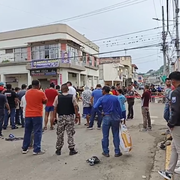 Foto de gente reunida por el asesinato de un guía penitenciario en Jipijapa, Manabí.( )