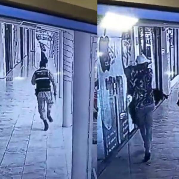 Con los delincuentes aún dentro del negocio, dos custodios se acercaron al establecimiento y observaron la escena, pero no actuaron de inmediato. Se ubicaron a unos metros del lugar e intentaron amedrentar a los ladrones con sus armas, no obstante, ellos comienza a disparar durante su escape.