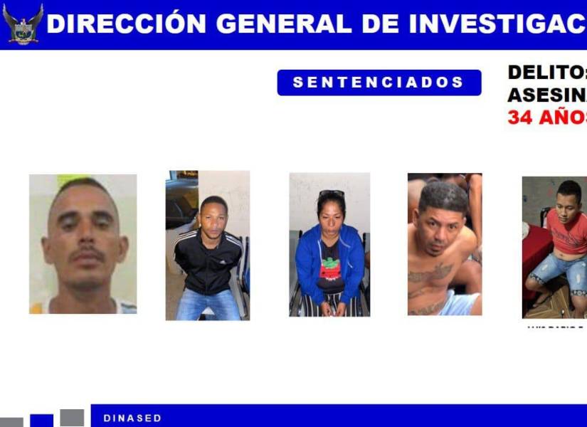 El venezolano Jean Carlos Arias Martines, el dominicano José Manuel Mateo Santos (32) y los ecuatorianos Sara Amada Cruz Pérez (48), Jairo Alexander Carriel Gruezo (45), Ricard Saúl Vásquez Toro (22) y Luis Darío Espinoza Macias, fueron sentenciados a la pena máxima de 34 años ocho meses de cárcel como coautores por asesinato.