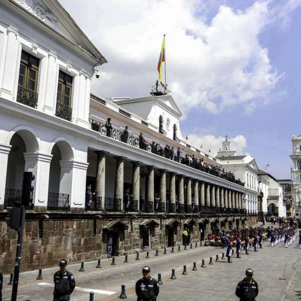 Fotografía de la fachada del Palacio de Carondelet en el Centro Histórico de Quito. ( )