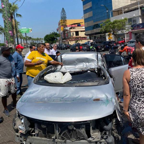 El vehículo quedó destruido y el ciudadano quedó atrapado en la cabina.En otro video se ve cuando varias personas auxiliaron al herido, que incluso se quejaba de no poder respirar bien, hasta que paramédicos del Cuerpo de Bomberos de Guayaquil llegaron al sitio.