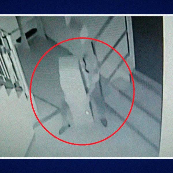 Cámaras de seguridad captaron el momento en el que el hombre se lleva dos ánforas.