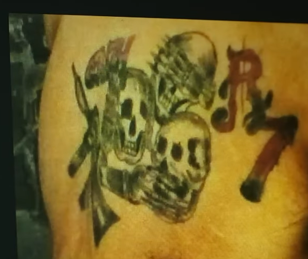 Imagen de un ecuatoriano detenido en Chile con tatuajes de la banda R7.( )