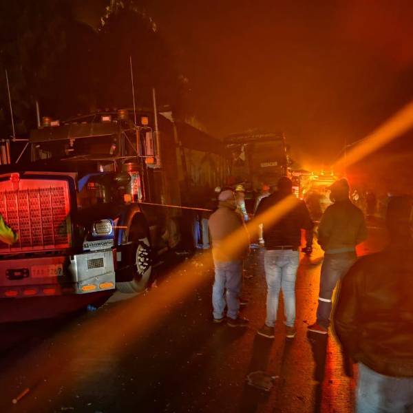 Un tráiler y un bus interprovincial estuvieron involucrados en este accidente. En imágenes difundidas por el ECU 911 se observa que el bus quedó incrustado en la parte trasera del tráiler.