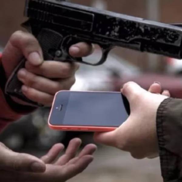 Cámaras de seguridad registraron el momento en el que se acercan en moto tres personas: dos hombres y una mujer; uno de ellos se bajó y trató de quitarle el celular a la víctima.