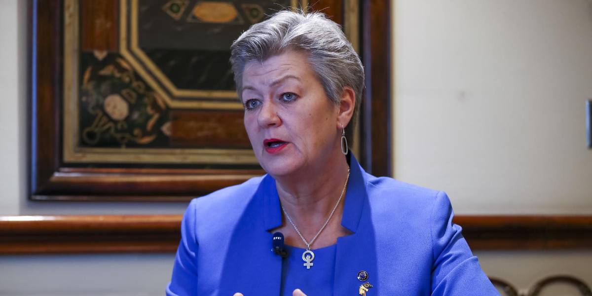 La comisaria europea de Asuntos de Interior, Ylva Johansson, habla durante una entrevista con EFE.( )