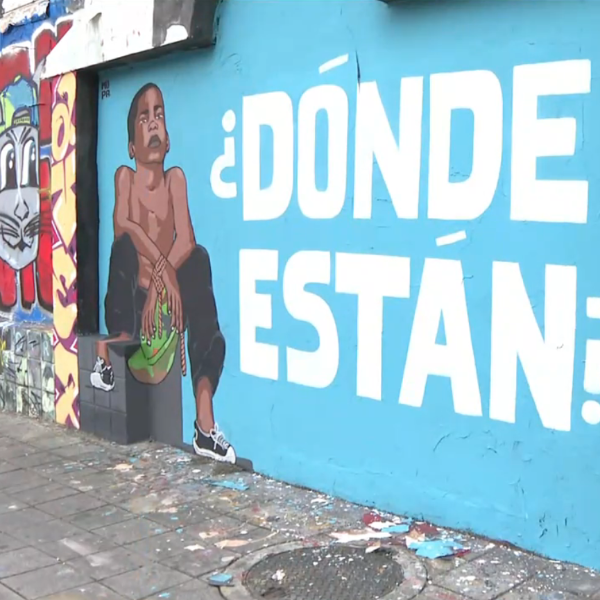 A manera de protesta también, en las calles Loja y rRcafuerte, se pintó un mural con la leyenda "¿Dónde están?", con la imagen de uno de los niños.