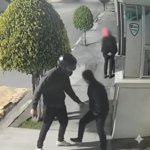 Eran las 05:30. El sujeto armado se movilizaba con su cómplice en una moto. Uno de ellos baja del vehículo y amedrenta a un hombre, quien intenta defenderse con golpes de puño.