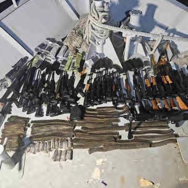 En una lancha que salió de México hacia Ecuador iban dos carabinas, 20 fusiles AK-47, una ametralladora, un fusil de francotirador Barrett, alimentadoras de fusil y cientos de municiones.( )