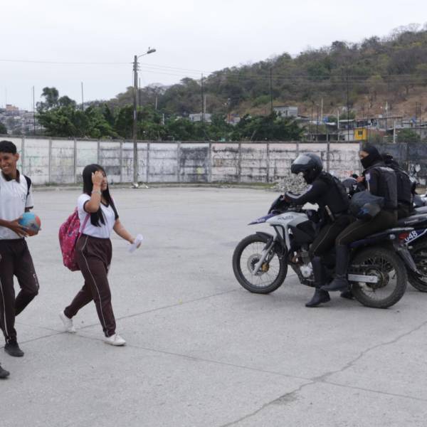 Por ahora, la presencia de los agentes es permanente durante el ingreso y la salida de los alumnos de Nueva Prosperina, la zona más peligrosa de Ecuador.