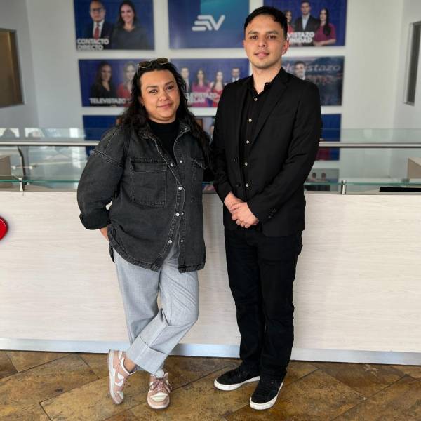 Los hermanos Ana Paulina e Isaac Serafín Delgado en las instalaciones de Ecuavisa, en Quito. ( )