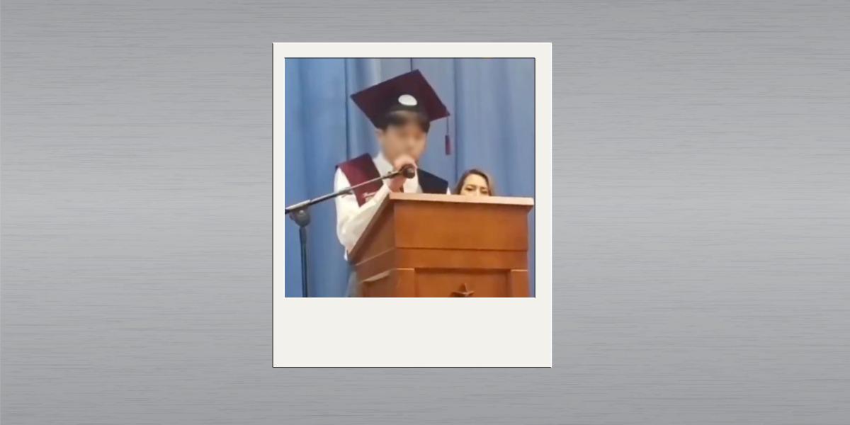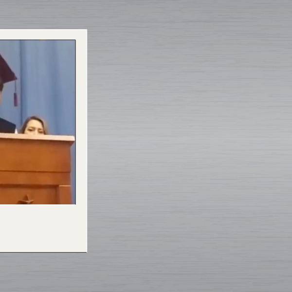 Momento en el que el estudiante dio su discurso durante la ceremonia de graduación.( )