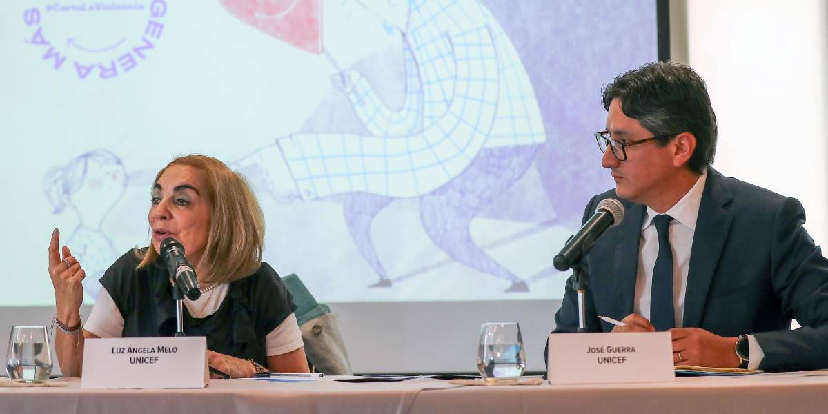 La representante del Fondo de las Naciones Unidas para la Infancia (Unicef) en Ecuador, Luz Ángela Melo, y el oficial de Protección a la Infancia de Unicef en Ecuador, José Luis Guerra.( )