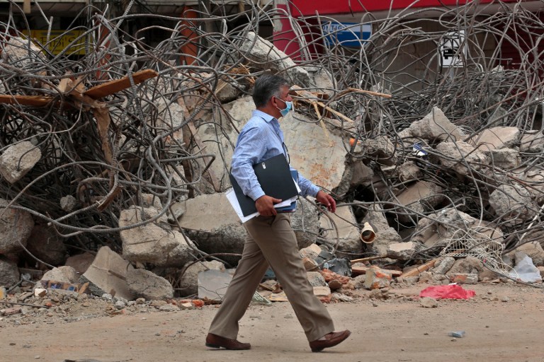 PORTOVIEJO, Ecuador.- Un hombre camina frente a ruinas de una edificación. Foto: AFP