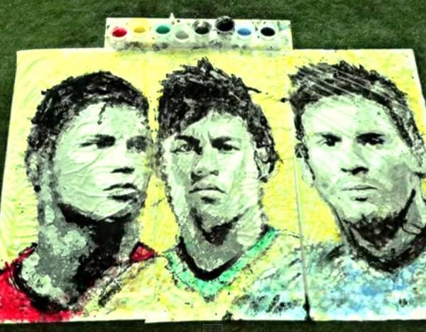 (VIDEO) Artista inspirada en Messi, Neymar y Ronaldo pinta retrato con un balón