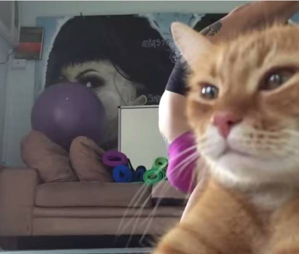 A este felino poco le interesó cómo se ejercitaba su ama, y decidió ser el protagonista de
