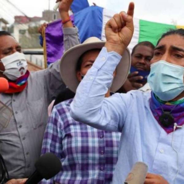 El candidato indígena ha participado este fin de semana en una caminata que avanza desde el sur del país para concentrarse el próximo martes, en Quito, contra lo que consideran un fraude.
