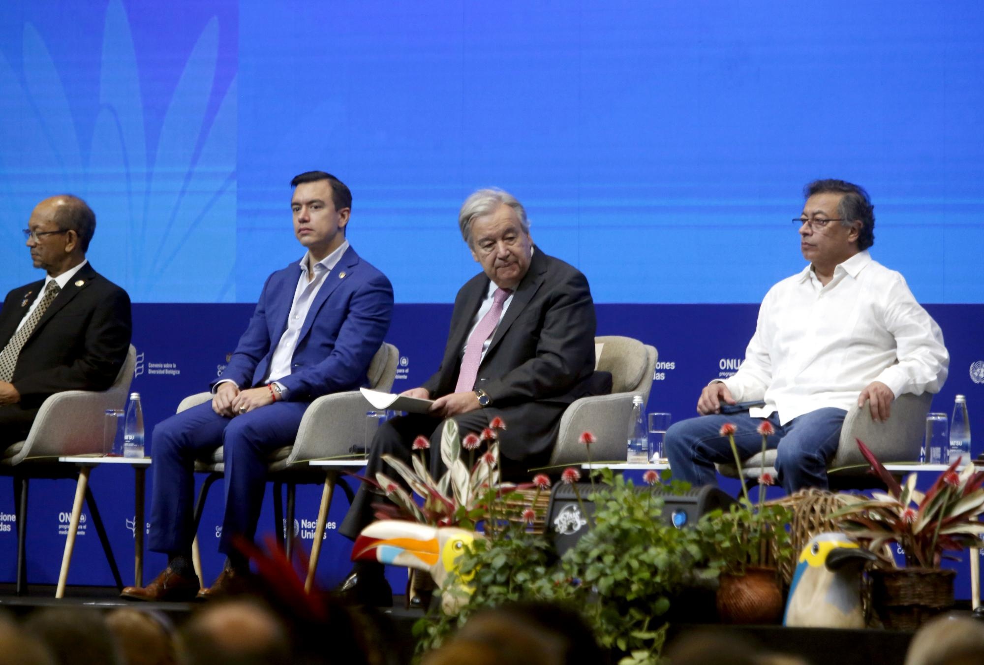 El presidente Daniel Noboa participó hoy, martes 29 de octubre de 2024, en la Conferencia de las Naciones Unidas sobre Biodiversidad (COP16), que se realiza en Cali, Colombia. Al final del encuentro internacional, tenía previsto reunirse con su par de Colombia, Gustavo Petro.