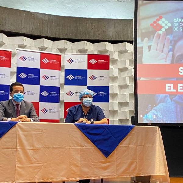 Los miembros del directorio de la Cámara de Comercio de Quito y el presidente de la Federación Médica Ecuatoriana firmaron un acuerdo para apoyar medidas contra el covid-19 en el país.