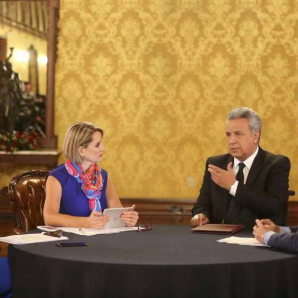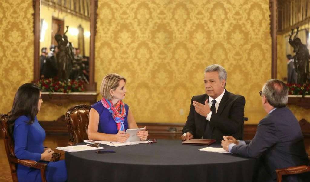 En la entrevista, desarollada en el Palacio de Carondelet, participaron los periodistas: Estéfani Espín de Ecuavisa, Janet Hinostroza de Teleamazonas y Eduardo Khalifé de Gamavisión.