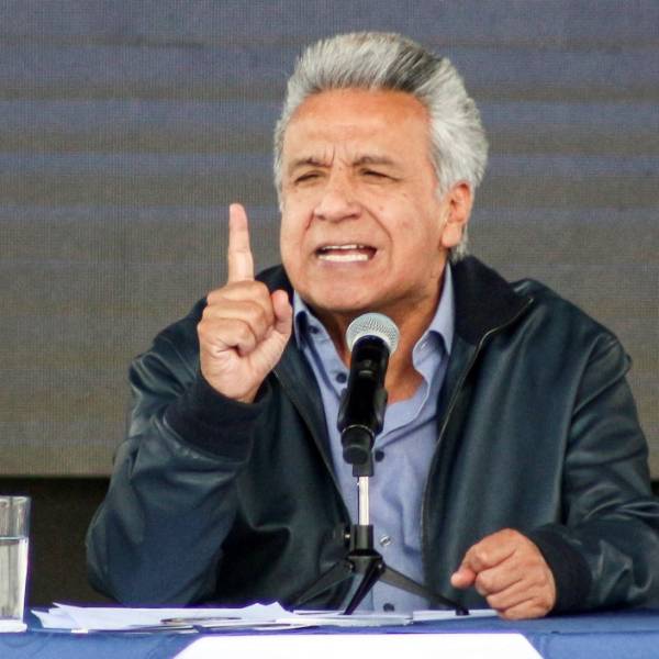 “La paciencia de Ecuador tiene su límite. Ustedes saben, somos tolerantes, somos mansos, pero no estúpidos. Le hemos quitado el asilo a este malcriado y ventajosamente nos hemos quitado una piedra del zapato”, dijo Moreno sobre Assange, durante el evento “Agua Segura para Todos” y la presentación del Plan Nacional de Riego y Drenaje 2019–2027.