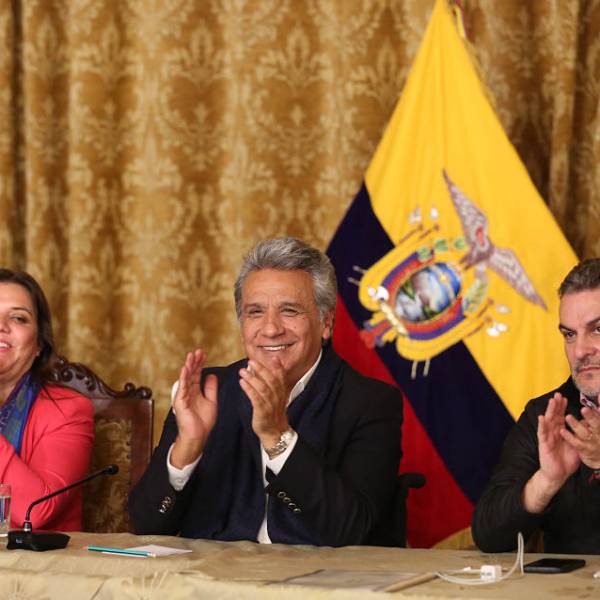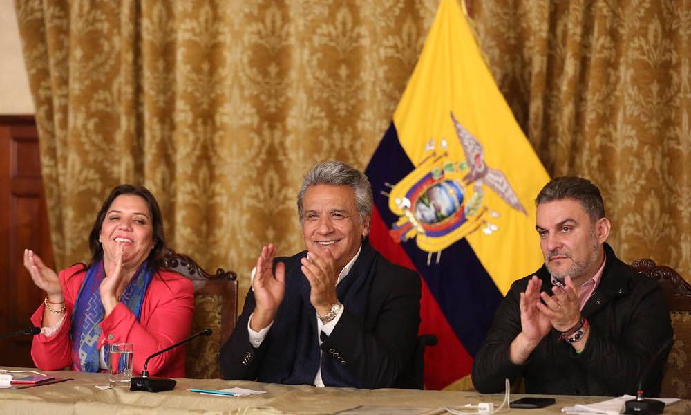 Desde el Salón Amarillo, en el Palacio de Carondelet, donde se encuentra reunido con su gabinete, el primer mandatario agradeció a los ciudadanos por participación en las urnas y el respaldo al ‘sí’, que hasta el momento lleva amplia ventaja en todas las preguntas.
