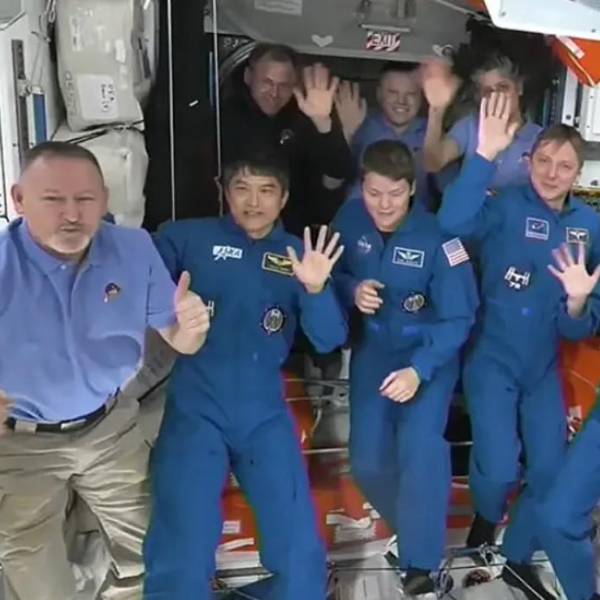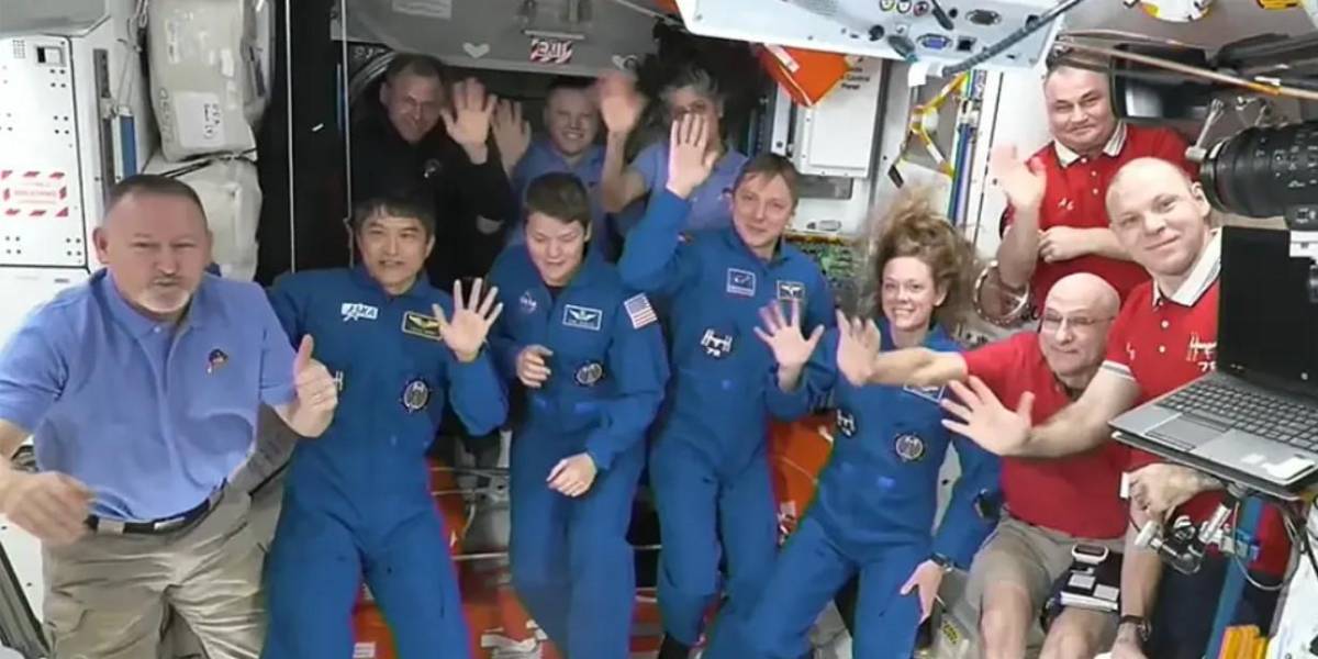 La tripulación actual de la Estación Espacial Internacional recibe a los miembros de la Crew-10.( )
