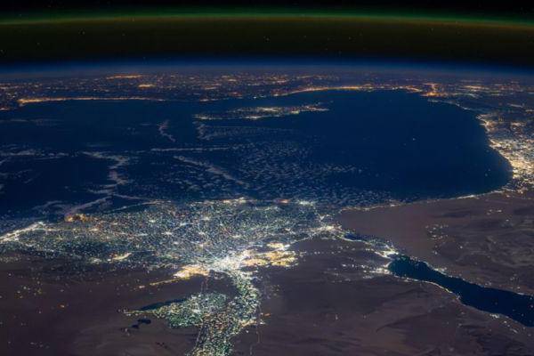 La luz de la luna ilumina El Cairo y el Mediterráneo en una noche mayormente clara.( )
