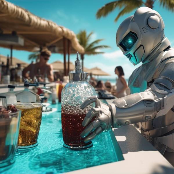Robots sosteniendo una bebida.( )