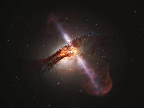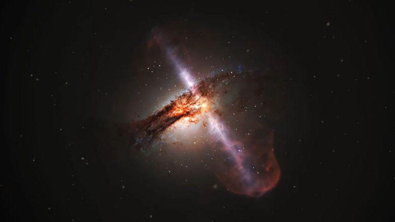 Alcanzando temperaturas superiores a los 10 millones de grados centígrados, el disco de acreción en un cuásar libera una radiación cegadoramente brillante en todo el espectro electromagnético.
