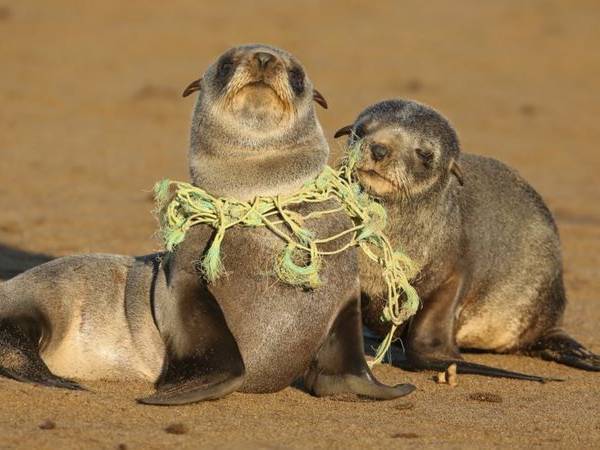 Por el contrario, las focas y los leones marinos no comen mucho plástico, pero pueden morir por comer restos de pesca.
