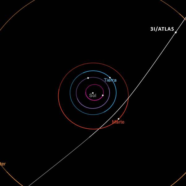 Este diagrama muestra la trayectoria del cometa interestelar 3I/ATLAS a su paso por el sistema solar. Este cometa hará su aproximación más cercana al Sol en octubre de 2025.( )