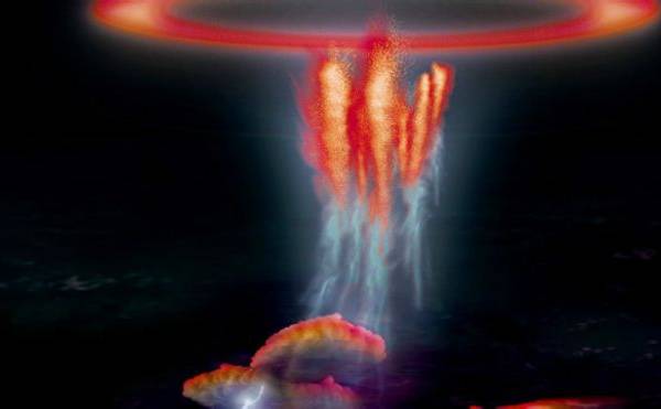 Los científicos no saben cómo se forman los chorros azules. Esta imagen es una ilustración del fenómeno.