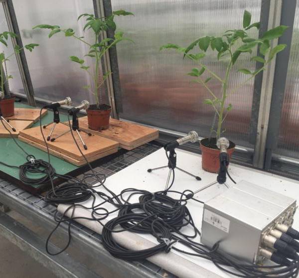Las plantas interactúan con insectos y otros animales, muchos de los cuales utilizan el sonido para comunicarse, “por lo que sería muy poco óptimo para las plantas no utilizar el sonido en absoluto", dijo Hadany. Los investigadores usaron micrófonos para grabar a plantas de tomate y tabaco sanas y estresadas, primero en una cámara acústica insonorizada y luego en un invernadero más ruidoso.